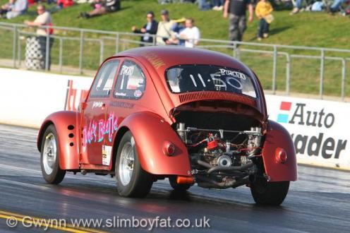 Dude's Beetle was a mostly home built VW engined drag car which I raced in the Volkswagen Drag Racing Club's (VWDRC) pro class. The car was originally my daily drive, but over the year a few upgrades turned into an all out race car! The car progressed massively over the years, starting off with a stock 1600cc engine, and finally ending up with a larger capacity 1914cc engine with a 50bhp of nitrous, turning out 175bhp at the wheels. This cumulated in a best ET of 11.82 at 115mph at Shakespeare County Raceway!